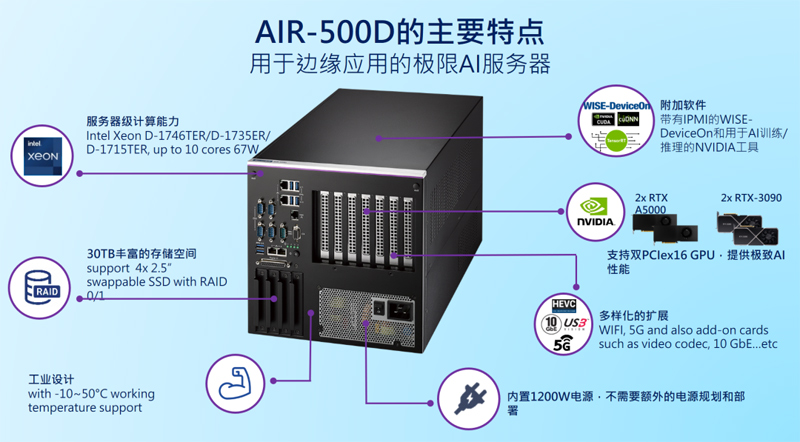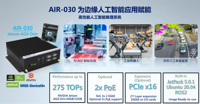 隨著邊緣計(jì)算和人工智能對(duì)制造業(yè)、智慧城市、醫(yī)療和其他行業(yè)的不斷深入,應(yīng)用中對(duì)海量圖像數(shù)據(jù)處理的需求持續(xù)激增。作為NVIDIA的精英合作伙伴,研華可提供基于英偉達(dá)最新的Jetson AGX Orin和RTX系列平臺(tái)的邊緣AI解決方案。這些性能出色的解決方案非常適合于包括機(jī)器人和視頻分析在內(nèi)的各種AI應(yīng)用。研華的解決方案包括一個(gè)緊湊的人工智能系統(tǒng)和一個(gè)服務(wù)器級(jí)系統(tǒng),可滿足邊緣推理和再訓(xùn)練的要求。