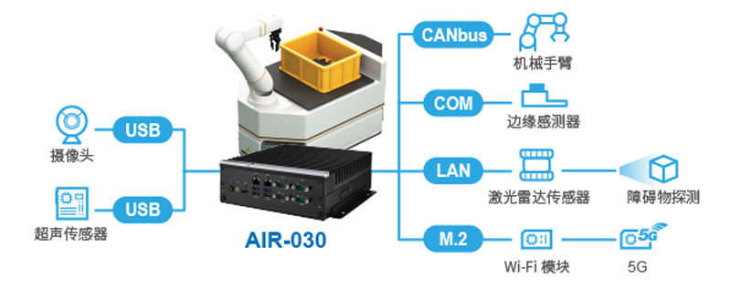 研華AIR-030提供強大的AI性能和全面的I/O支持,連接到不同的設備-包括攝像頭,傳感器和無線網絡。這種連通性使AMR能夠在倉庫環(huán)境中獨立移動時檢測障礙物。