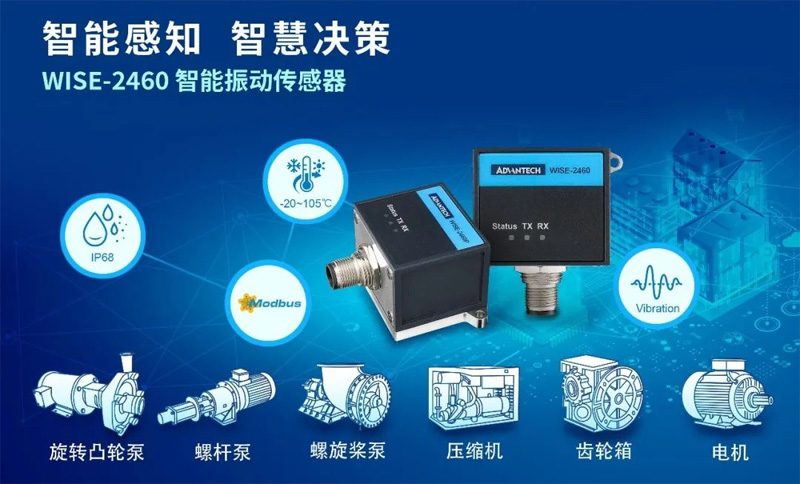 研華WISE-2460智能振動傳感器支持通過Modbus/RTU協議的RS-485串行通信,不僅擁有傳統有線連接的穩定性和高速數據傳輸的優點,同時融入高度的集成性和智能化、10KHz高頻振動監測等功能,為現代工業設備的預測性維護提供強有力的支持。