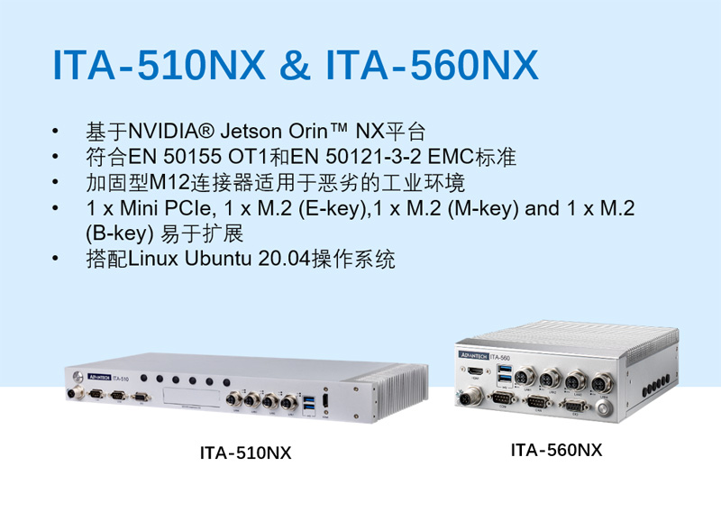 該系列產(chǎn)品具有豐富的I/O接口,可支持5G、WiFi等多種擴(kuò)展,并且寬溫寬壓設(shè)計(jì),產(chǎn)品符合EN 50155認(rèn)證和EN 50121-3-2 EMC標(biāo)準(zhǔn),配備的加固型連接器適用于惡劣環(huán)境使用。除了?NVIDIA?AGX Xavier與?Orin NX?產(chǎn)品,研華持續(xù)投入研發(fā),后續(xù)即將上市基于Orin Nano?與AGX Orin平臺(tái)的更高算力的產(chǎn)品,豐富AI服務(wù)器家族,提供給客戶可靠、多樣的產(chǎn)品選擇。