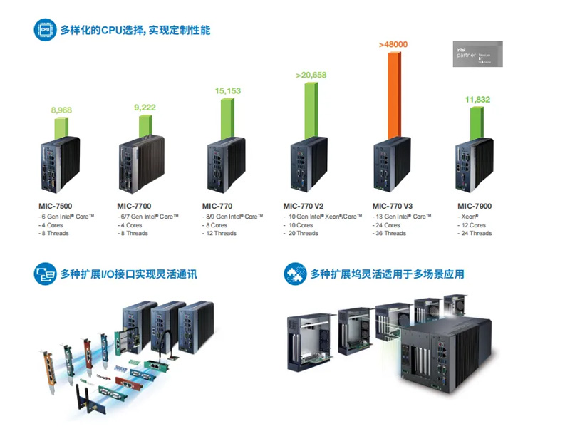 MIC-7000系列工控機(jī)提供高性能計(jì)算,可搭載多種處理器,多種 I/O 接口,并集成 i-Module 和 iDoor 模塊,具有靈活的可擴(kuò)展性,可作為數(shù)據(jù)網(wǎng)關(guān)和工業(yè)控制器。此外,集成智能 i-Module 后,產(chǎn)品可插接各種AI擴(kuò)展卡,滿足邊緣AI各類應(yīng)用的需求。