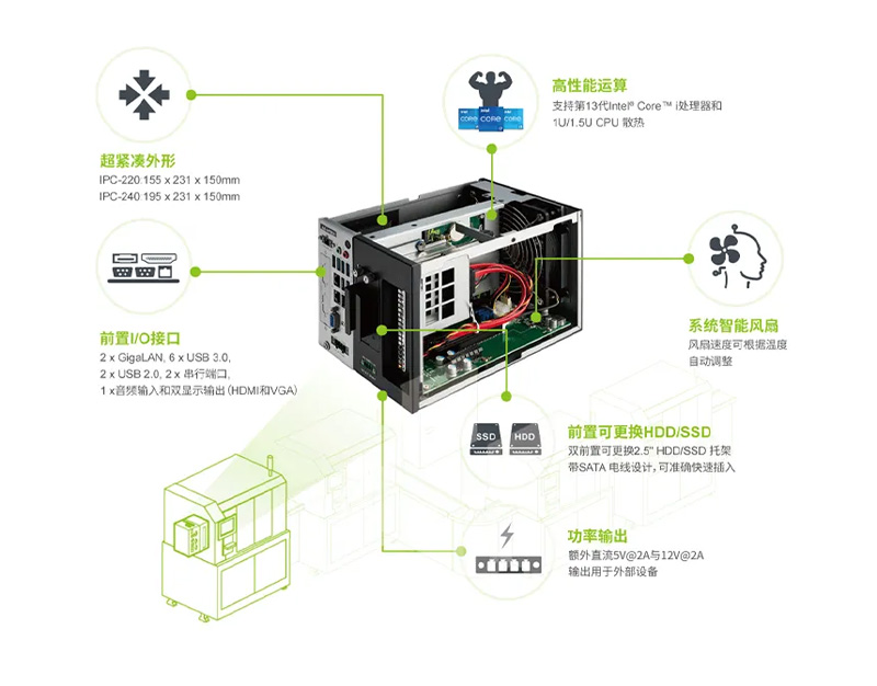 在當(dāng)前智能制造的環(huán)境下,模組化工控機(jī)具有的小型化特性是工業(yè)自動(dòng)化領(lǐng)域的一個(gè)重要發(fā)展方向,小型化工控機(jī)更具有靈活性,集成度更高。為了實(shí)現(xiàn)快速部署和降低維護(hù)成本,小型化工控機(jī)傾向于采用標(biāo)準(zhǔn)化和模塊化的設(shè)計(jì)。這將使得工控機(jī)的生產(chǎn)、安裝、調(diào)試和維護(hù)變得更加簡(jiǎn)單和高效。而且,在綠色發(fā)展角度下,通過采用低功耗的處理器、優(yōu)化散熱設(shè)計(jì)、提高能源利用效率等措施,工控機(jī)將能夠降低能源消耗,減少碳排放,符合可持續(xù)發(fā)展的要求。