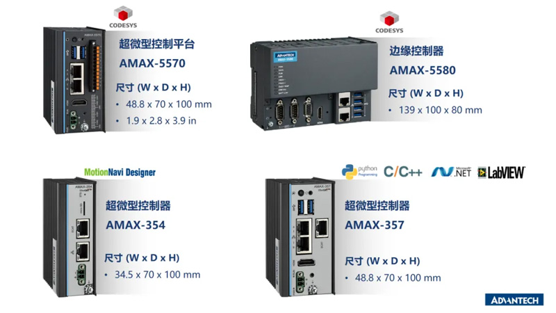 考慮到客戶(hù)的多樣化使用習(xí)慣,研華在運(yùn)動(dòng)控制領(lǐng)域推出了豐富多樣的產(chǎn)品。在Codesys系統(tǒng)方面,推出了AMAX-5570和AMAX-5580兩款邊緣控制器,在高級(jí)語(yǔ)言領(lǐng)域,則有AMAX-354和AMAX-357兩種EtherCAT運(yùn)動(dòng)控制器,為客戶(hù)根據(jù)自身習(xí)慣的不同而提供多重選擇,來(lái)滿(mǎn)足半導(dǎo)體不同工藝段的設(shè)備開(kāi)發(fā)需求。
